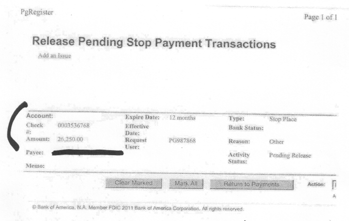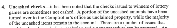 "unclaimed funds acct" that will be turned over to the State - specifically the