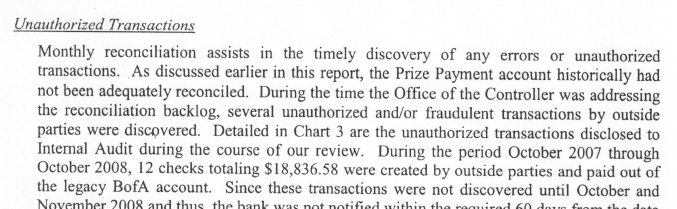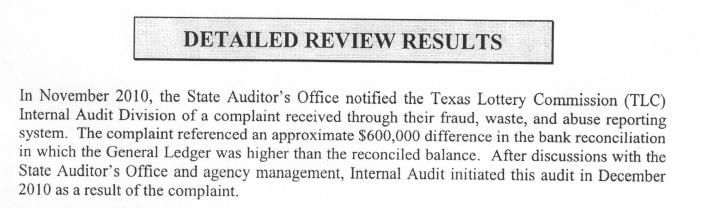 "Politely Another example - "unauthorized activity/transactions" - In Part 5, I disputed Management's claims and showed how On Sunday, Oct 13, 2013, the Austin American Statesman In Part 6, I explained, in depth, what the Texas Lottery was supposed to do Additionally, I