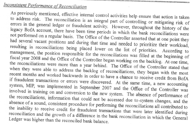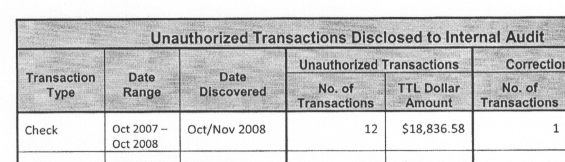 Excerpt - Final Report - page 13 - Response #2 And about those "two senior accounting staff" and Oh, and by the way, documents have shown the Fraudulent transactions actually occurred