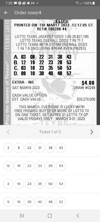 actually purchased a $5 Quick Pick via a TX Lottery