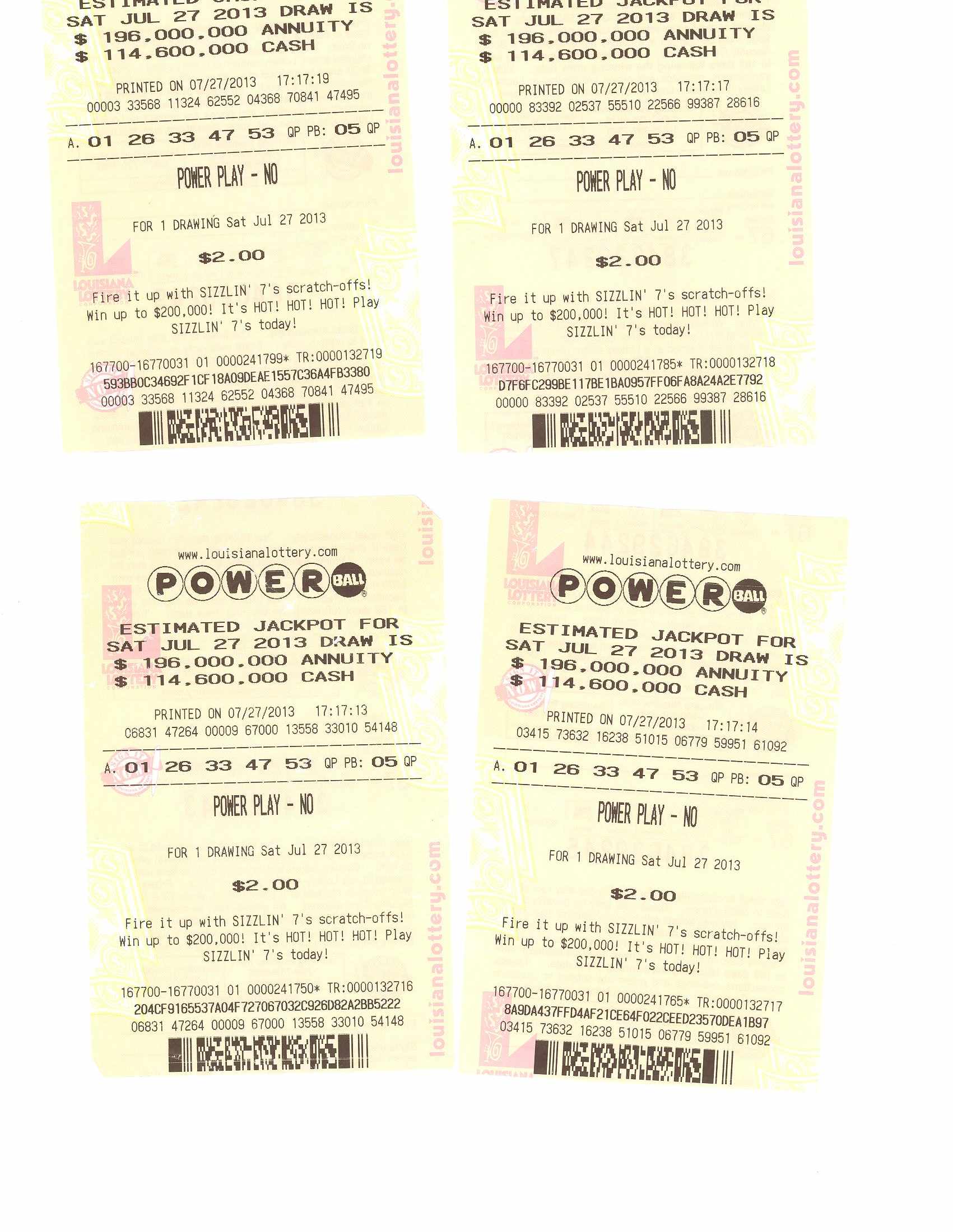 Lottery Terminal Prints Four Duplicate Powerball Quick Picks