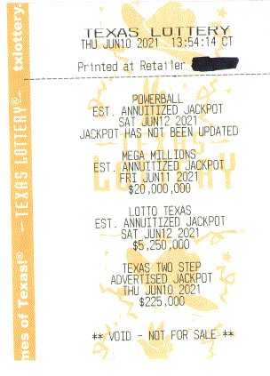 No Sales Information For Texas Games??? Here it is, 20 hours after the 6/9/21Powerball drawing About The Excerpts Below