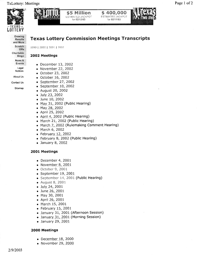 - 4 - I received this from the Texas Lottery. I converted the spread sheet into a pdf for the purpose of posting on my web site. Click here to see the spreadsheet. - Special Note - Column 13 is the column that shows how much was kept by the TLC from the 6 of 6 prize pool. It specifies one of two things - either the money was "AR" - added to reserve or "PW" - paid to winner. Those marked "AR" rightfully belonged to the player but the player didn't receive it. If you would like a copy of the excel file itself so you can open it in Excel and do your own calculations, just email me and I'll send you the file ASAP. If there is anything you do not understand about these figures, feel free to call and I'll do my best to explain. Click here to see the spreadsheet.